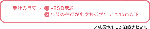同じ性別・年齢の子に比べて-2SD以下の場合は低身長症と定義されています。
