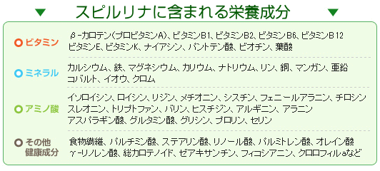 スピルリナ、コラーゲン、アクアミネラル、ひじき末、ビタミンC、亜鉛酵母、ナタネ硬化油、シェラック
